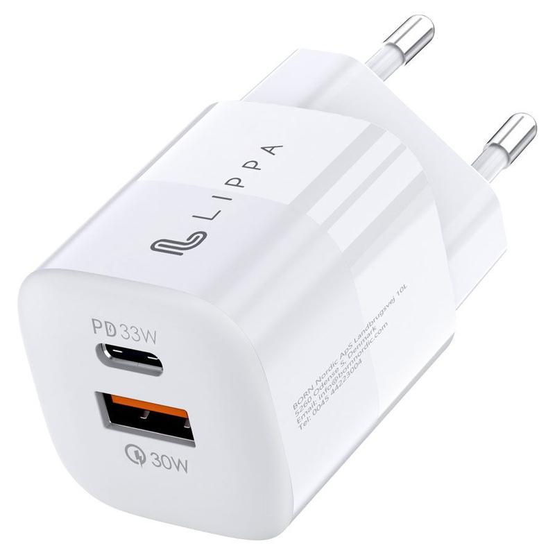• Lippa 33W PD & QC GaN Wall Charger - USB-C, USB-A - EU Plug