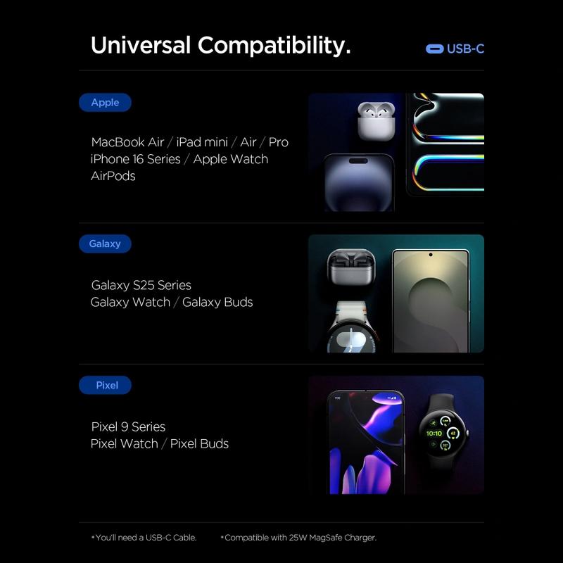El Spigen EE673EU es la solución de carga todo en uno perfecta para usuarios con múltiples dispositivos. Con una fuerte entrega de energía, gestión inteligente de la energía y características de seguridad robustas, garantiza una carga rápida fiable donde quiera que estés. Compacto, eficiente y construido con la calidad de confianza de Spigen, es una excelente opción para viajes, trabajo y uso diario.