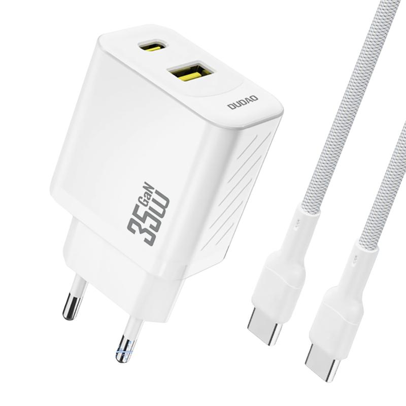 • Cargador de pared Dudao A27 MaxC 35W GaN - Cargador rápido USB-C y USB-A con cable USB-C de 1 m.