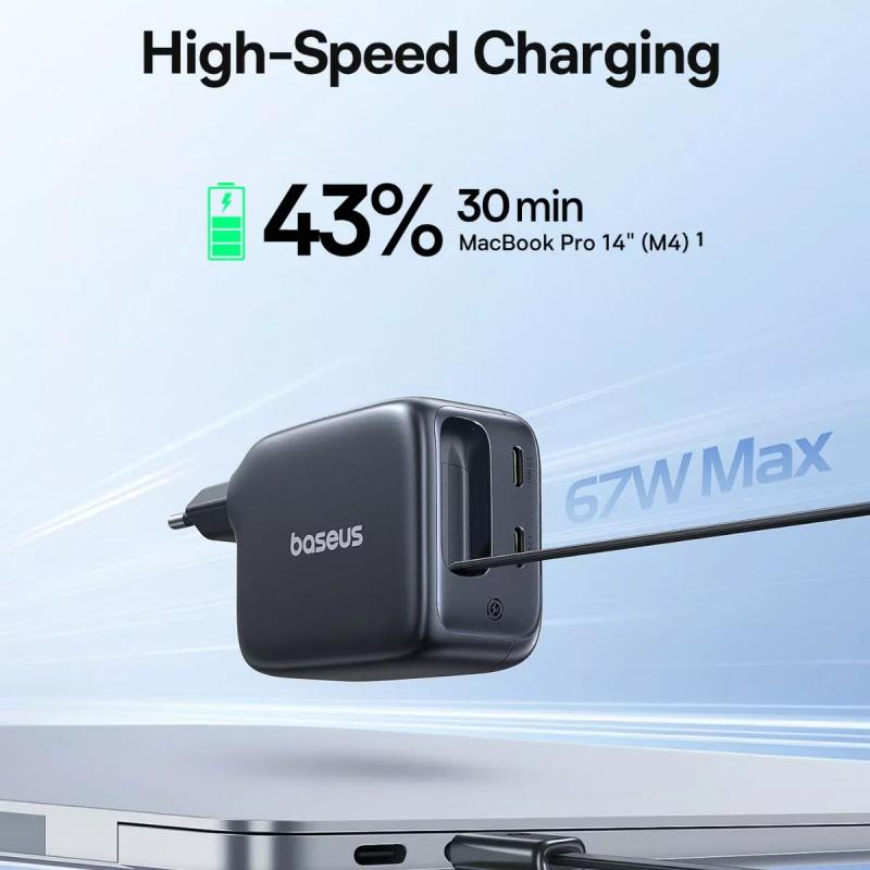 Alimente sus dispositivos de manera eficiente con el cargador de pared Baseus EnerCore CJ11 de 67W, diseñado para ordenadores portátiles, tabletas y teléfonos inteligentes modernos. Fabricado con tecnología GaN6 avanzada, ofrece una carga rápida y estable, al tiempo que mantiene temperaturas de funcionamiento más bajas. El cargador cuenta con tres salidas USB-C, incluido un cable USB-C retráctil integrado, lo que proporciona una solución de carga limpia y organizada para el hogar, la oficina o los viajes.