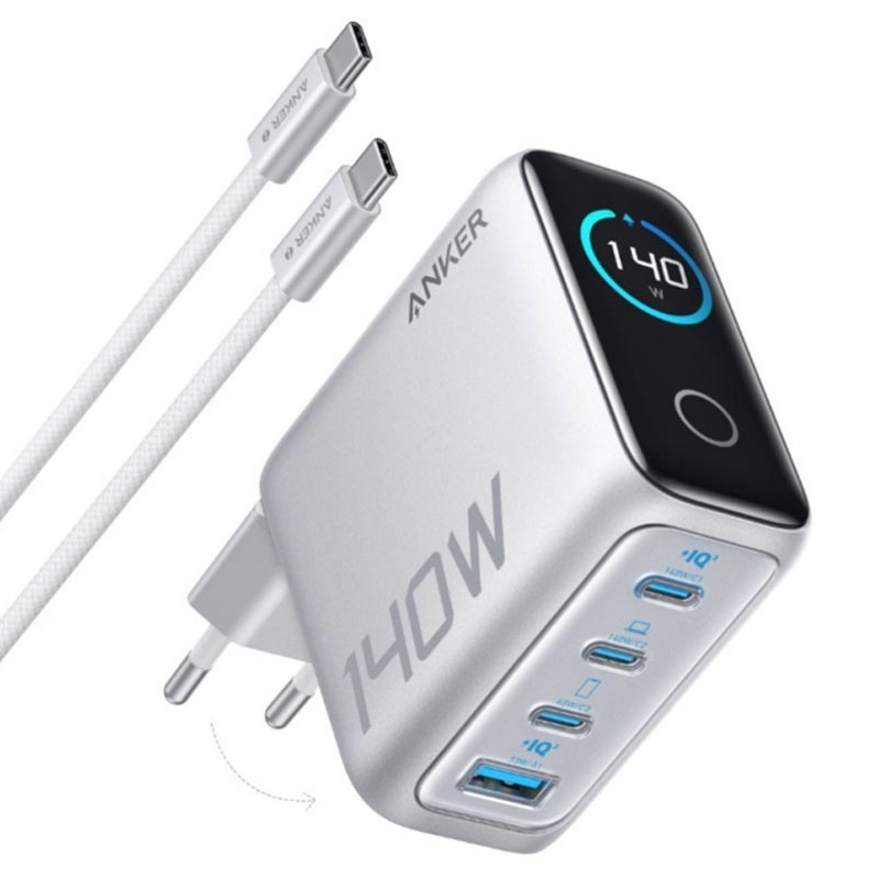 Cargador de sobremesa Anker Zolo 140W GaN - Hub 3 x USB-C y 1 x USB-A con pantalla táctil inteligente, puntas plegables y seguridad de 8 capas.