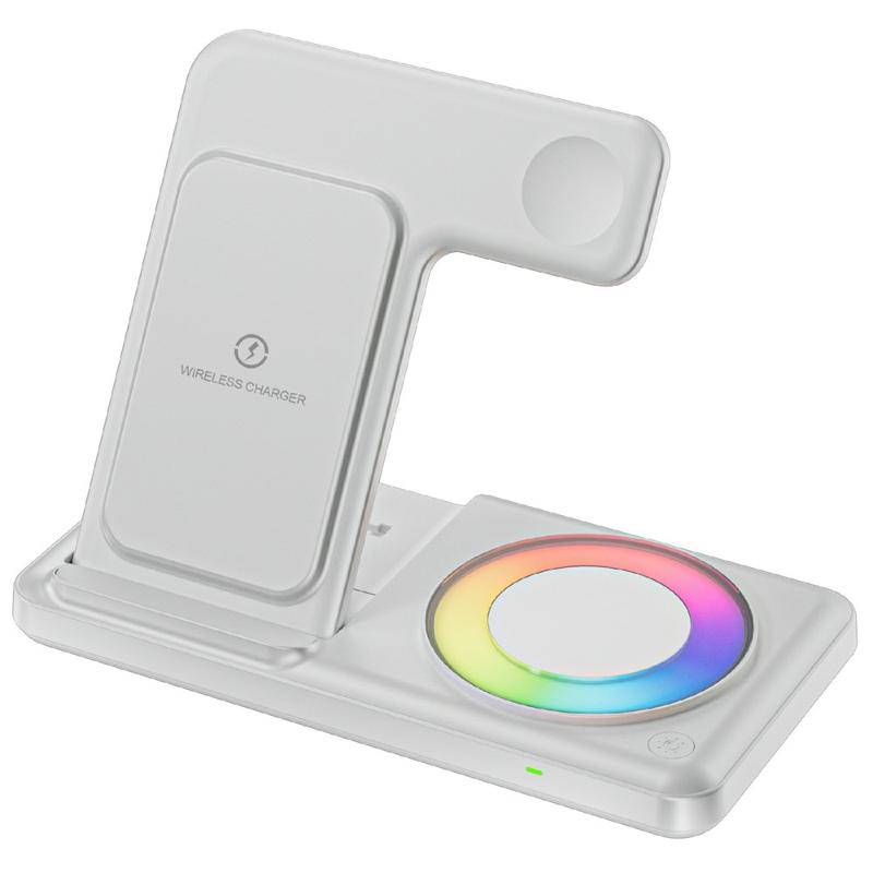 Cargador inalámbrico plegable 4 en 1 Q50D con luz ambiental RGB - 15W - Blanco