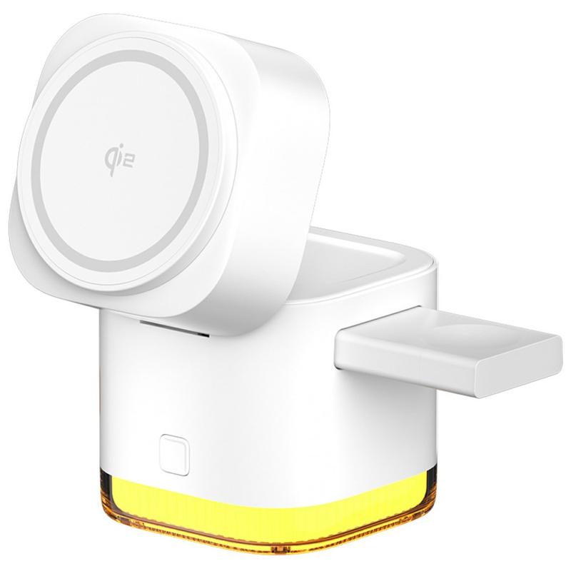 C53 Cargador inalámbrico plegable MagSafe Qi2 5 en 1 / Estación de carga rápida de 15 W con cable USB-C retráctil y luz nocturna LED - Compatible con iOS y Android