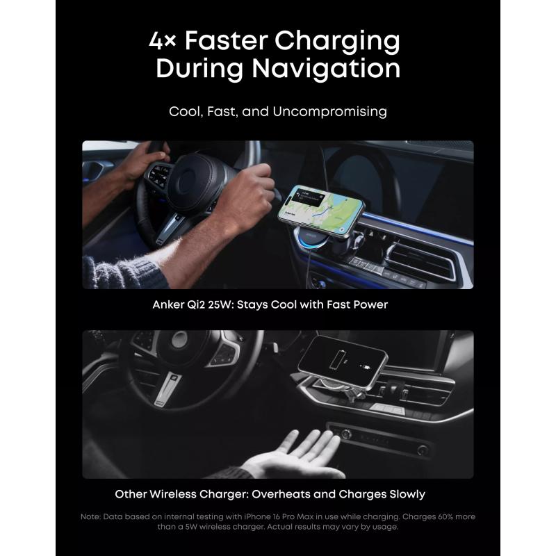 Los cargadores inalámbricos para coche Qi2 están diseñados para mejorar la alineación magnética y la eficiencia de carga en comparación con las configuraciones de carga inalámbrica más antiguas. Una mejor alineación ayuda a reducir la pérdida de energía y puede permitir una carga más constante durante la conducción. La refrigeración activa es especialmente útil en los cargadores para coche, ya que los teléfonos suelen calentarse más cuando se utiliza la navegación, se transmiten datos y se carga al mismo tiempo. Un cargador refrigerado puede ayudar a mantener un rendimiento más estable durante los viajes largos.