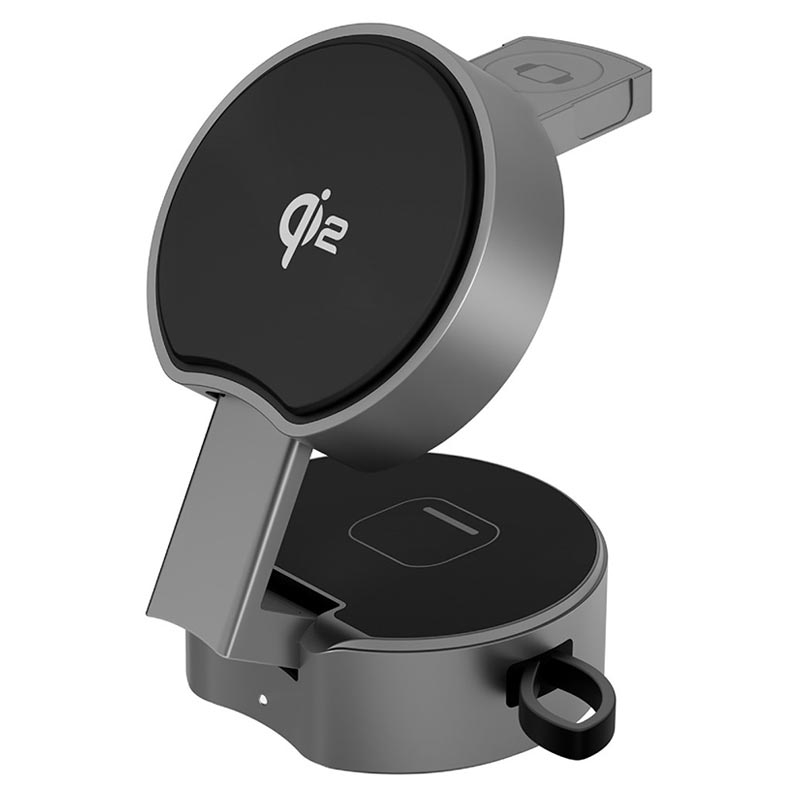 Cargador inalámbrico rápido magnético plegable 3 en 1 B30 Qi2 de 15W - Negro / Gris