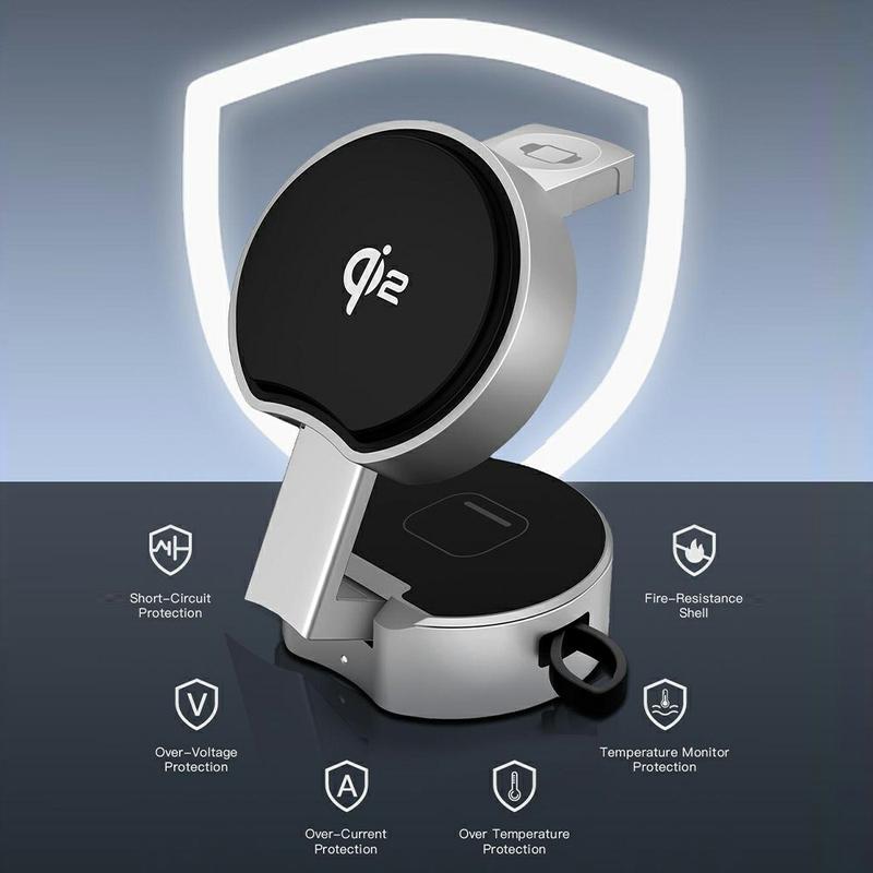 Mantén tu sistema de carga ordenado y listo para viajar con el cargador inalámbrico magnético plegable 3 en 1 B30. Diseñado para facilitar el día a día, esta base de carga compacta te permite cargar tu teléfono, reloj y auriculares en un solo lugar, lo que la convierte en una opción práctica para usar en casa, en la oficina y durante los viajes.