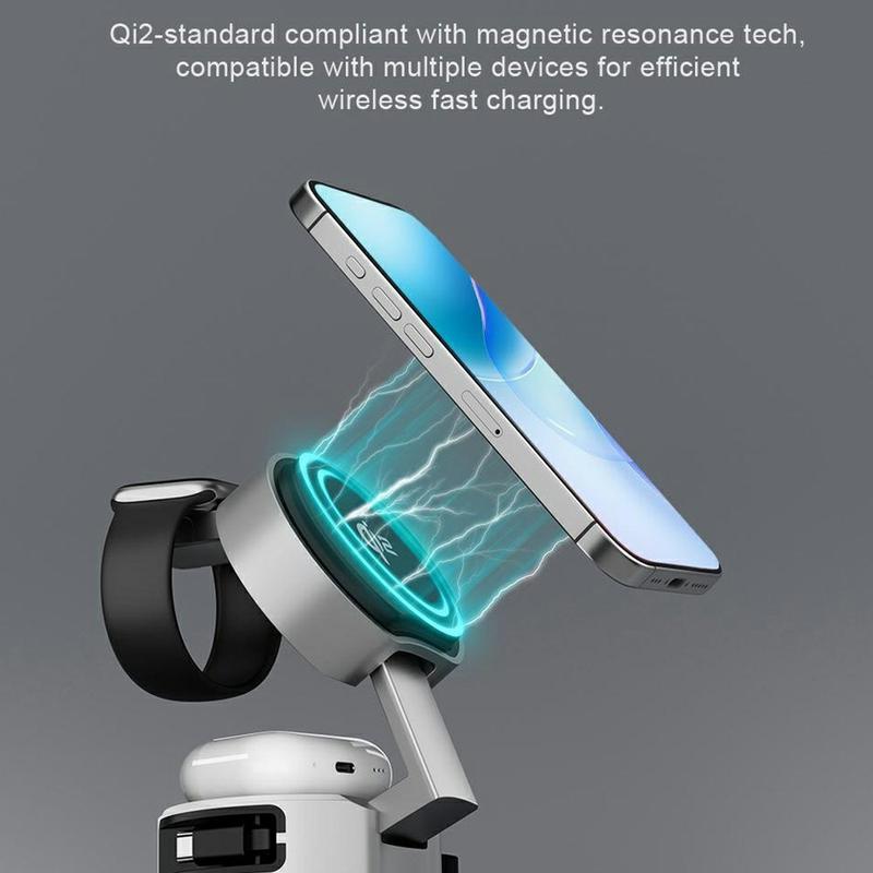 Con compatibilidad con la carga rápida Qi2 de 15W, el cargador ofrece una alineación magnética segura para una carga inalámbrica estable. El cable retráctil integrado de 80 cm ayuda a reducir el desorden y facilita el almacenamiento, mientras que el diseño plegable mantiene el cargador lo suficientemente compacto como para caber fácilmente en un bolso o en el equipaje de mano.