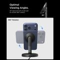 El soporte ergonómico cuenta con un ángulo de inclinación fijo de 30º que proporciona una posición de visualización cómoda, lo que lo hace ideal para leer mensajes, realizar videollamadas o ver contenido mientras se carga. El cargador admite tanto la orientación vertical como la horizontal, lo que te ofrece flexibilidad a la hora de navegar, ver vídeos en streaming o utilizar aplicaciones sin necesidad de usar las manos. Su diseño minimalista se integra fácilmente en escritorios, mesitas de noche y oficinas.