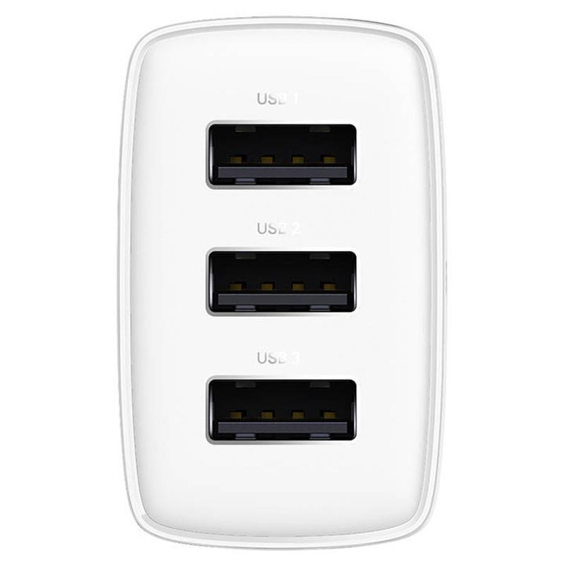 Baseus Cargador Rápido Compacto, 3x USB, 17W (Blanco)