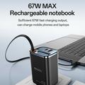 - Potencia de carga rápida de 67 W: proporciona una carga rápida a través del cable retráctil Type-C integrado, lo que garantiza un rápido aumento de energía para smartphones, tabletas y otros dispositivos alimentados por USB.