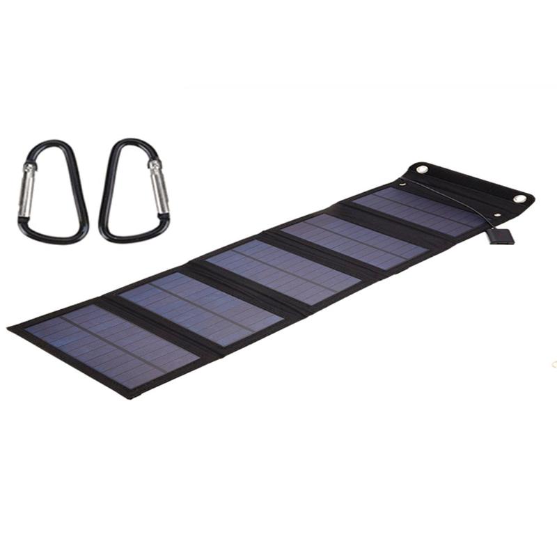 - Cargador solar plegable de 15W con 5 paneles para mejorar la superficie y la portabilidad