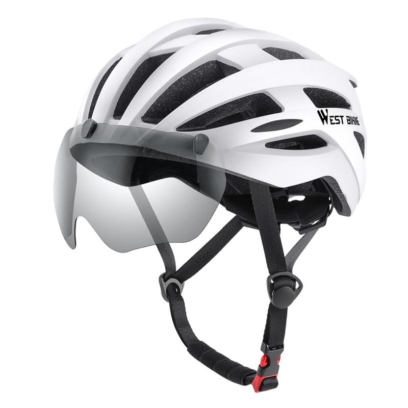 Casco de ciclismo West Biking YP0708100 con gafas magnéticas: casco de bicicleta con amortiguación para cabezas de 62-65 cm, 24 ventilaciones y sistema de ajuste de 360 grados