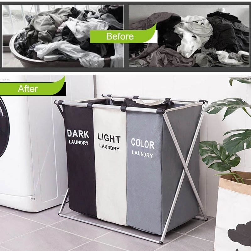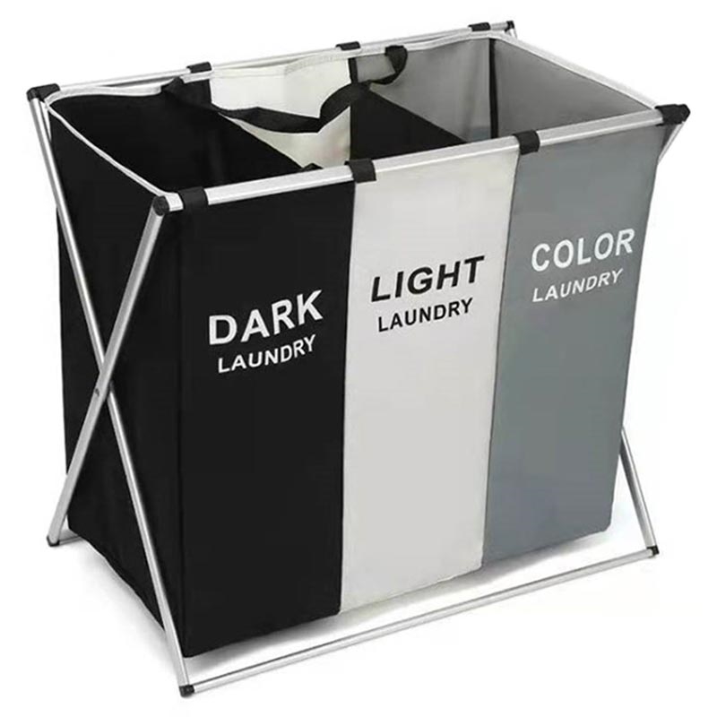 Este cesto de ropa plegable de 3 compartimentos le ayuda a organizar y separar la ropa sin esfuerzo. Con tres compartimentos etiquetados y un resistente armazón de aluminio, mantiene la ropa sucia ordenada y bien guardada a la vez que aporta un aspecto limpio y moderno a tu hogar.