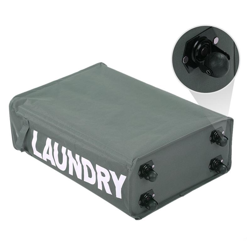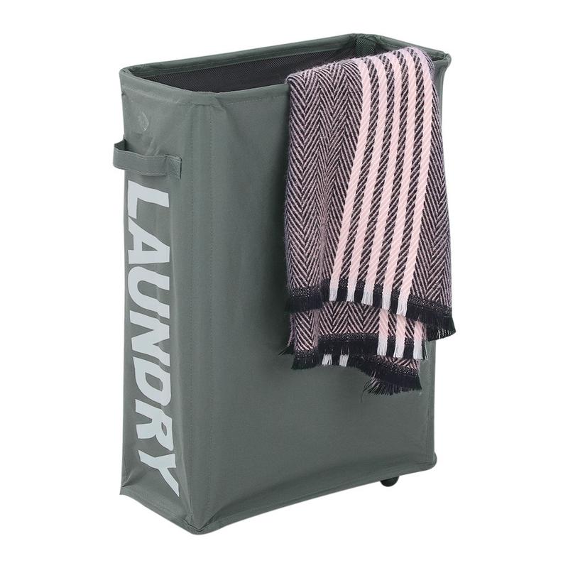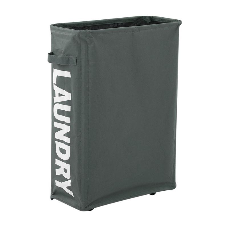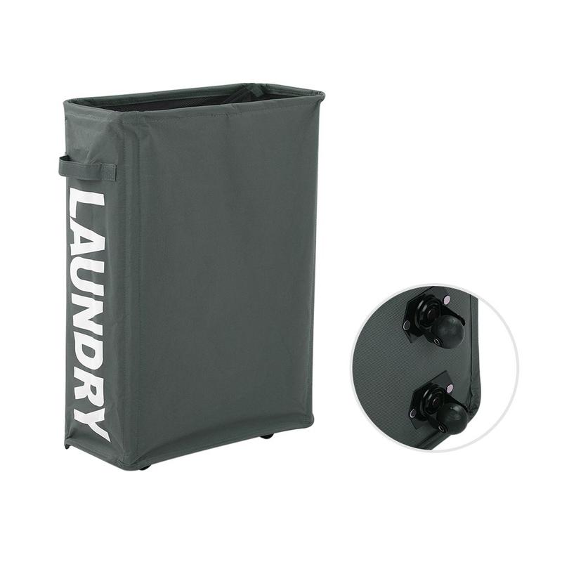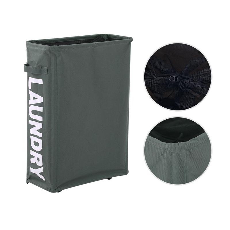 Cesto Oxford Plegable Delgado con Ruedas y Tapa de Malla con Cordón - Gris