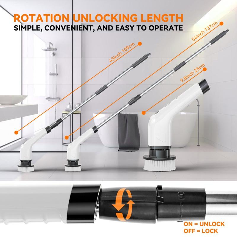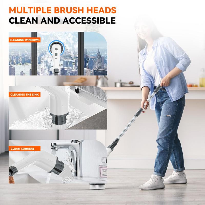 CLE-04 Cepillo de limpieza eléctrico inalámbrico con mango extensible - Fregador giratorio 8 en 1, recargable por USB-C, resistente al agua IPX7