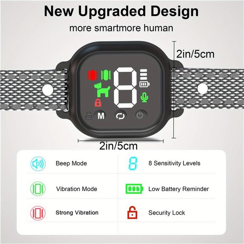 Adiestre a su perro de forma segura con el collar antiladridos con pantalla táctil, diseñado para reducir los ladridos excesivos utilizando únicamente sonido y vibración, sin descargas. Con dos motores de vibración, modos personalizables y una pantalla a color, garantiza un adiestramiento eficaz y humanitario.