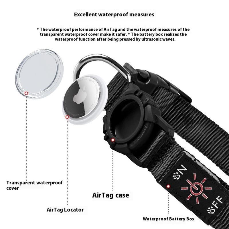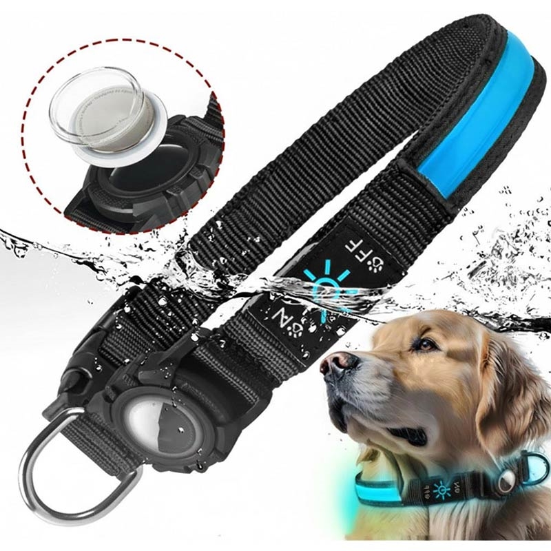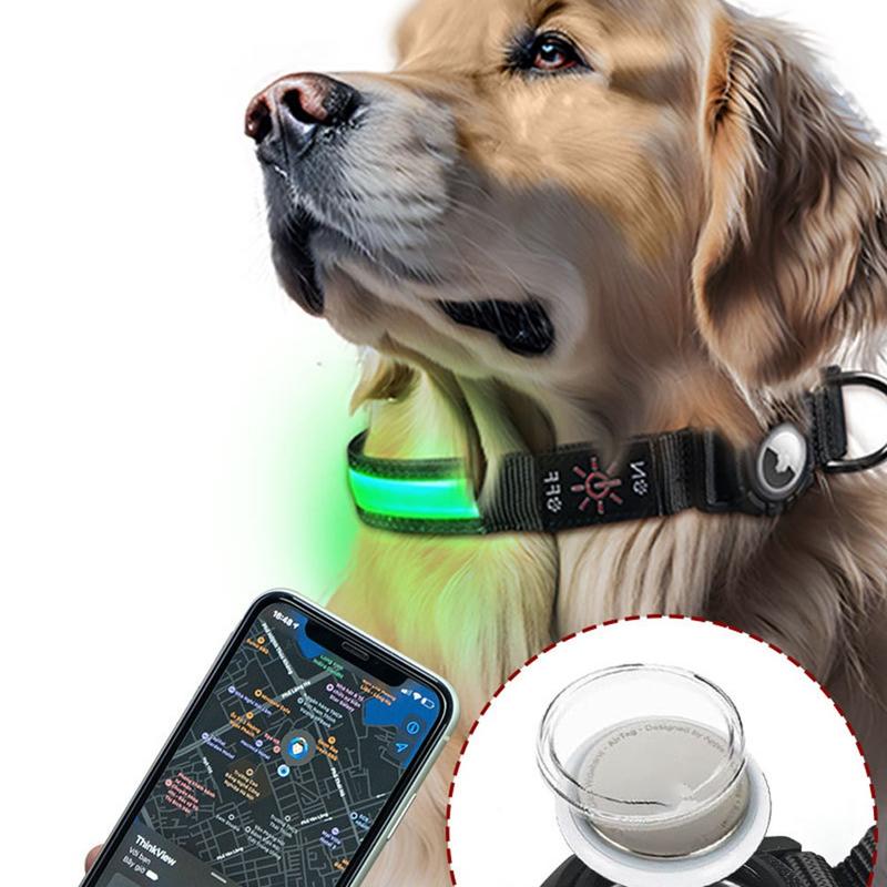 • Collar LED para perros con funda para Apple AirTag 1/2 - Collar impermeable antipérdida con luz recargable