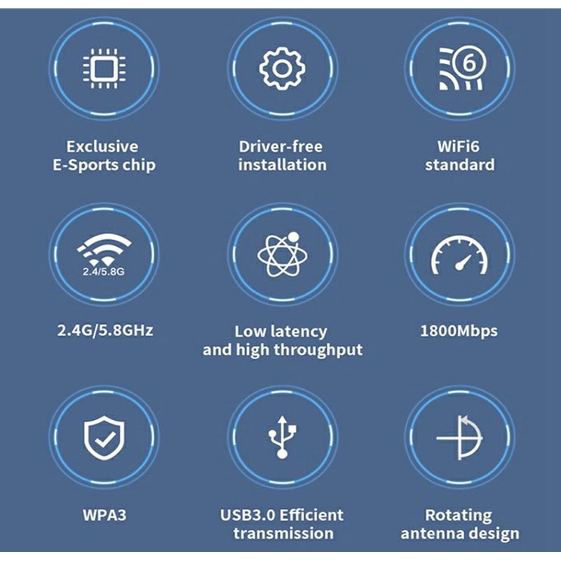 - Velocidad de 1800Mbps de doble banda - Alcanza hasta 600 Mbps en 2,4 GHz y 1201 Mbps en 5 GHz, ideal para streaming HD, juegos y transferencias de archivos de gran tamaño.