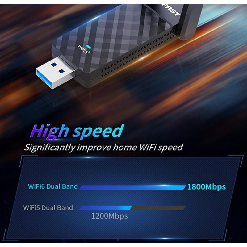 Mejora tu PC o portátil con una conectividad ultrarrápida y estable gracias al adaptador USB COMFAST CF-952AX V2 WiFi 6. Con una velocidad de doble banda de hasta 1800Mbps, este adaptador plug-and-play garantiza un rendimiento de baja latencia y una cobertura de señal potente, perfecta para streaming, juegos y trabajo remoto.
