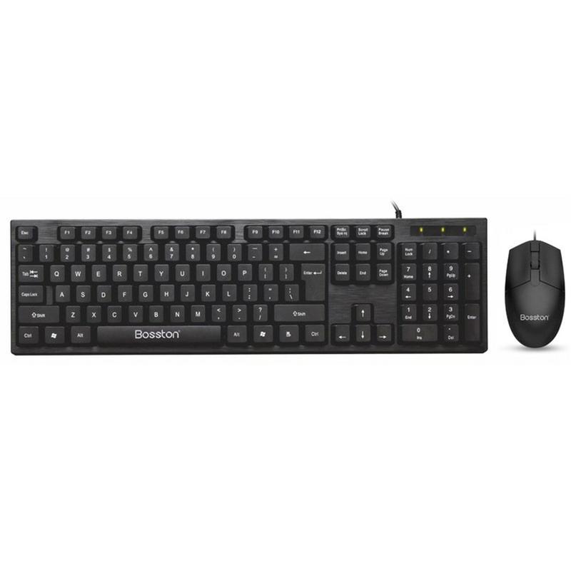 Conjunto de teclado con cable USB y ratón ergonómico de 1000 ppp Bosston D5200 - Negro