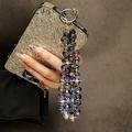 • Cadena para móvil con cuentas de cristal de 14cm - Lanyard para la muñeca y llavero con lengüeta transparente