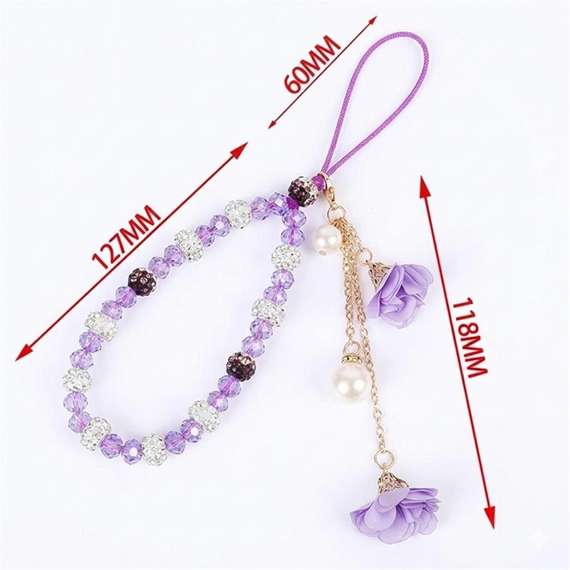 Añade un toque elegante a tu móvil con este cordón para móvil de 18,7 cm con cuentas de cristal. Diseñado tanto como accesorio decorativo como práctica correa de muñeca, combina cuentas de estilo cristal, detalles metálicos con efecto strass, dijes en forma de rosa y un colgante de perla sintética para lograr un look refinado en el día a día.