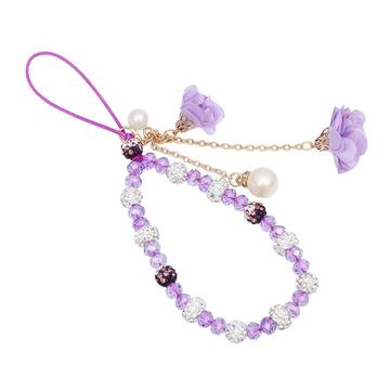 Cordón para móvil con dijes de rosa y cuentas de cristal - Morado