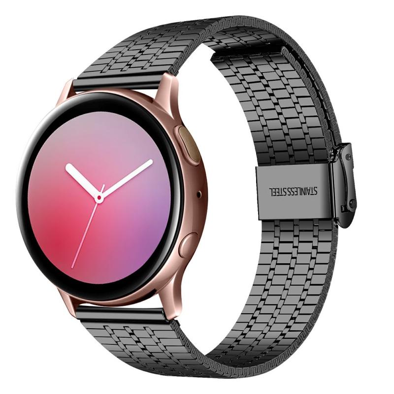 Esta correa está hecha de acero inoxidable duradero y es muy cómoda de usar. Cuenta con un práctico cierre de hebilla plegable y un marco de metal que se adapta perfectamente a tu monitor de actividad. Con un diseño clásico, esta correa hace que tu Garmin Vivoactive 4 sea adecuada para todas las ocasiones.