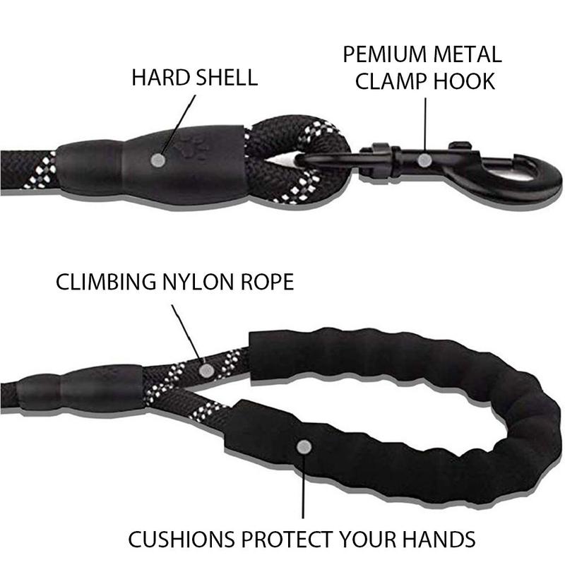 Esta duradera correa para perros está fabricada con cuerda de nailon de alta calidad resistente al estiramiento, diseñada para soportar la fuerza de tracción de los perros durante los paseos y las sesiones de adiestramiento. La correa cuenta con un mango acolchado de EVA suave, proporcionando un agarre cómodo y proteger su mano de la quemadura de la cuerda. Incorpora hilos reflectantes que aumentan la visibilidad durante los paseos nocturnos, garantizando su seguridad y la de su mascota. El clip de aleación de zinc de alta resistencia con un diseño de rotación de 360 grados evita que se enrede, lo que permite paseos suaves y agradables.