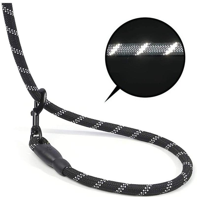 - Diseño reflectante: Los hilos reflectantes entretejidos en la correa mejoran la visibilidad en condiciones de poca luz, fomentando la seguridad durante los paseos nocturnos.