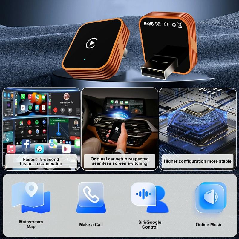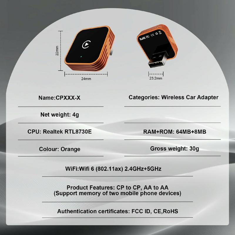 Diseñado para ser compatible tanto con dispositivos iPhone como Android, el CP030-3 admite CarPlay y Android Auto inalámbricos para un uso diario más fluido en la carretera. Su diseño compacto facilita dejarlo conectado en el coche o cambiarlo de vehículo cuando sea necesario, mientras que su estructura ligera y su resistente construcción de aleación de aluminio y acrílico garantizan un uso fiable en las condiciones cambiantes del interior del vehículo. Con BT 5.3 y compatibilidad con la transmisión inalámbrica, está diseñado para mantener una comunicación estable entre tu teléfono y el sistema de tu coche.