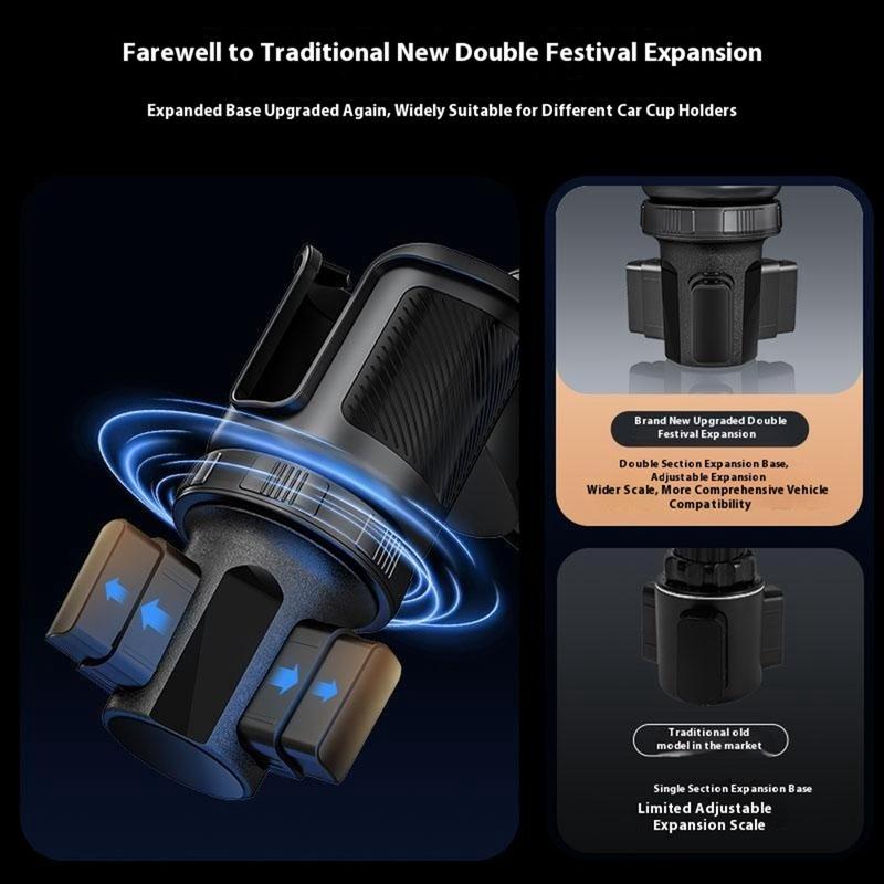 - Base extensible de doble etapa: El sistema de giro y bloqueo garantiza un ajuste perfecto en la mayoría de los portavasos de coche para una mayor estabilidad.
