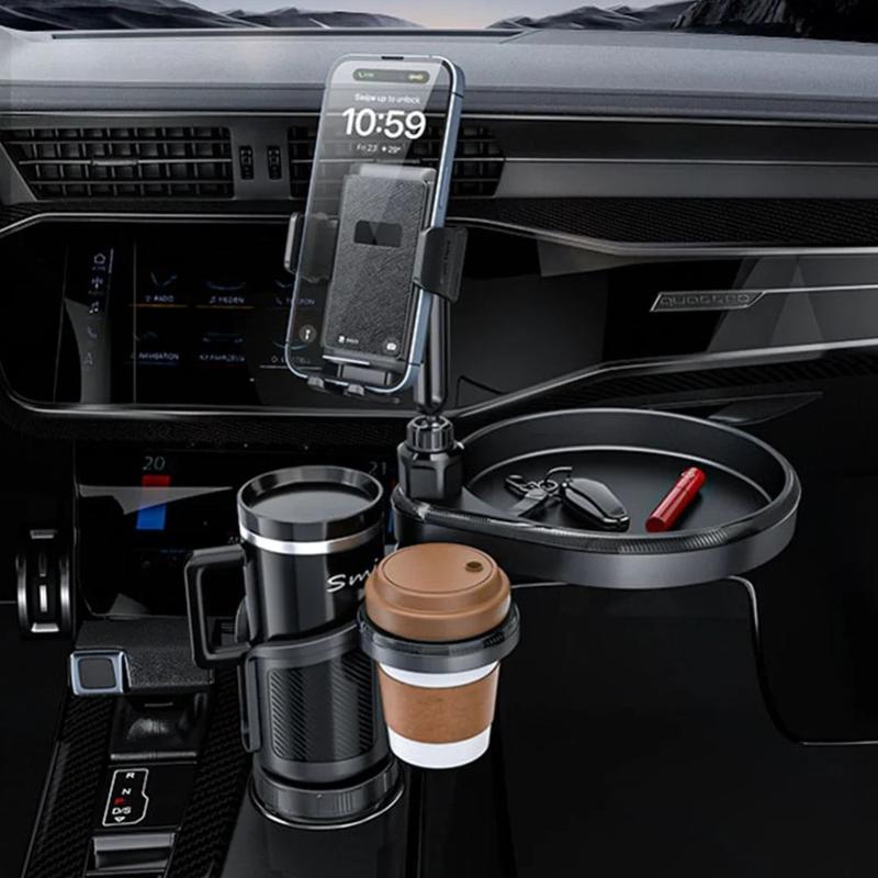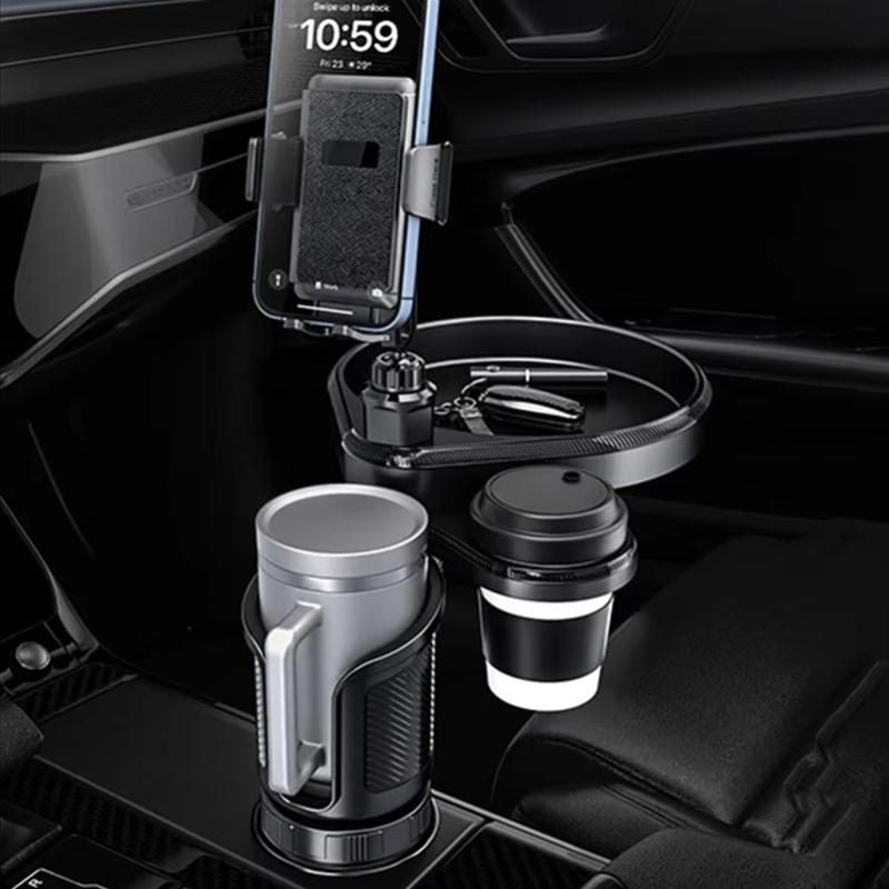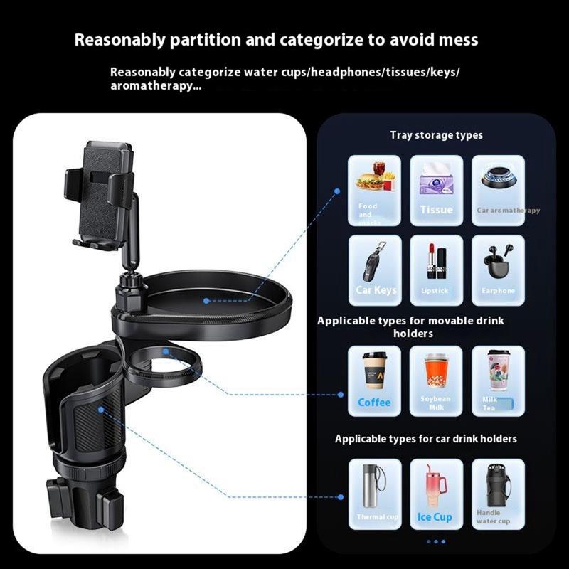 CP242 Bandeja de expansión 4 en 1 para portavasos de coche - Soporte universal para teléfono, soporte para taza y soporte giratorio para bandeja