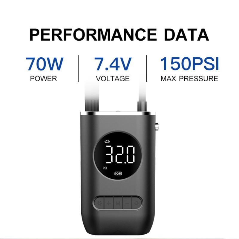 - La potencia de salida de 70 W proporciona un bombeo de aire fiable para el uso diario en un formato compacto y portátil.