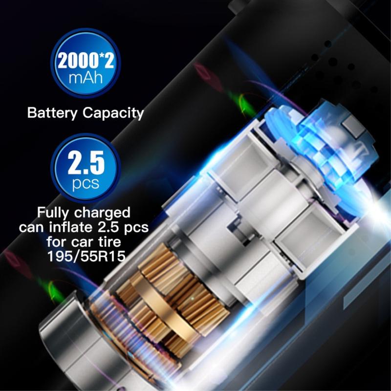 - El tiempo de bombeo de aproximadamente 8 minutos para un neumático de coche 195/55/R15 permite un uso práctico sobre la marcha.