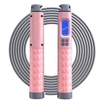Cuerda de saltar ajustable S09 con contador digital de calorías y de saltos - Rosa