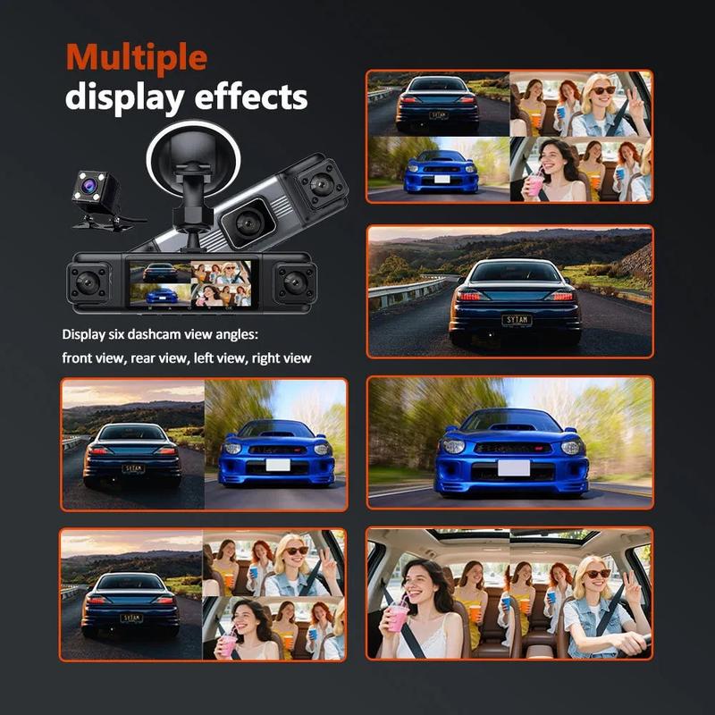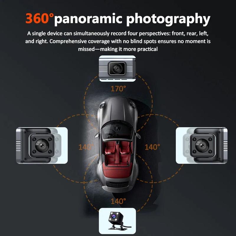 3.0" IPS 1080P 4-Lens Dash Cam con grabación frontal, trasera y lateral - Wide-Angle Vehicle DVR