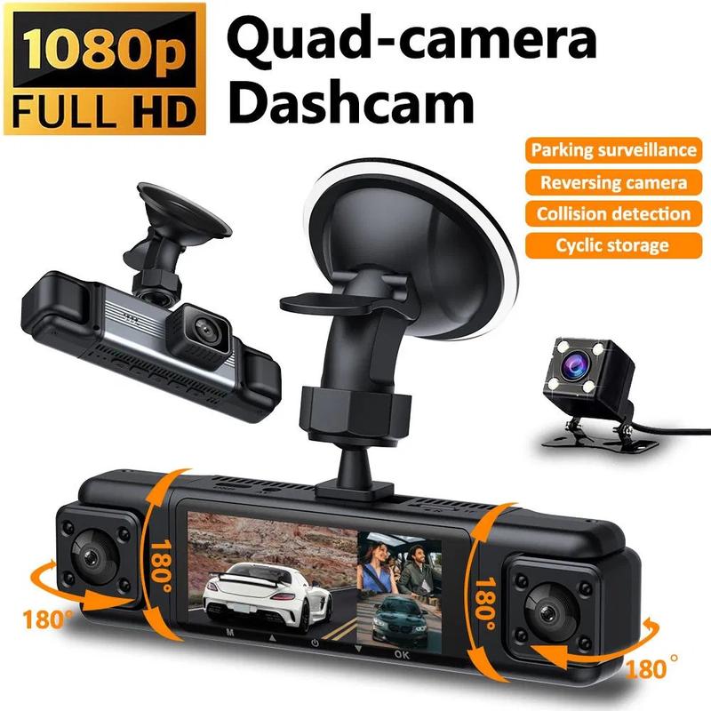 Esta dash cam de 4 lentes proporciona el tipo de cobertura que normalmente se encuentra en los sistemas automotrices premium. Con grabación nítida a 1080P, múltiples funciones de seguridad y monitorización completa de la parte delantera y trasera, le ofrece confianza, pruebas y tranquilidad cada vez que conduce, a un precio asequible.