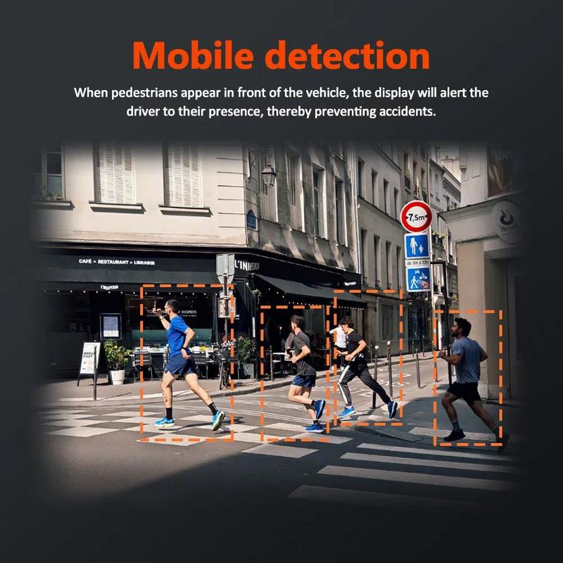 Un gran ángulo de visión de 170° reduce los ángulos muertos y garantiza que veas más de la carretera. Combinado con las lentes traseras y laterales, este sistema ofrece un punto de vista completo del vehículo, ideal para conducir por varios carriles, adelantar, aparcar y dar marcha atrás.