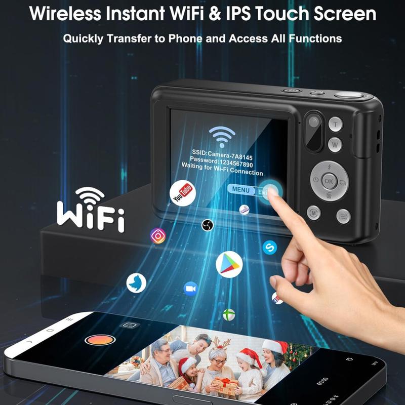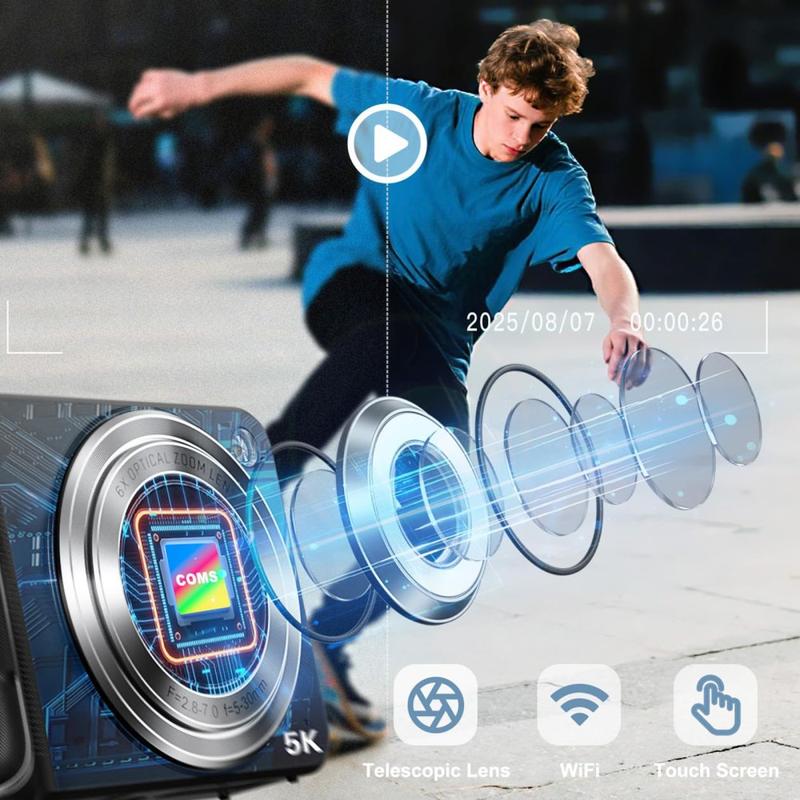 La minicámara digital DC309X combina objetivos duales de alta resolución, zoom óptico 6X y estabilización avanzada para ofrecer fotos y vídeos excepcionales en un diseño compacto y portátil. Equipada con un sensor frontal GC8613 de 800 W de calidad profesional y un objetivo trasero Sony IMX214 de 13 MP para selfies, esta cámara garantiza detalles nítidos para paisajes y una claridad perfecta para autorretratos. Su pantalla táctil IPS HD de 2,8 pulgadas ofrece una visualización nítida y un control intuitivo.