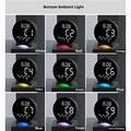 - Luz ambiental de colores - Añade un ambiente acogedor con un suave resplandor en la base y una visualización animada de los segundos.