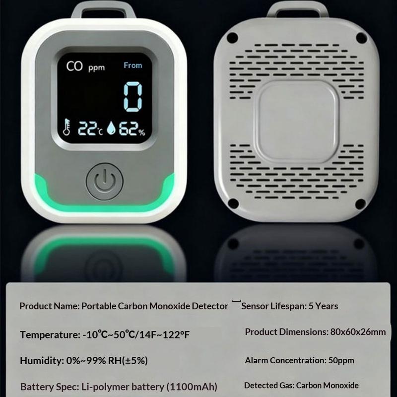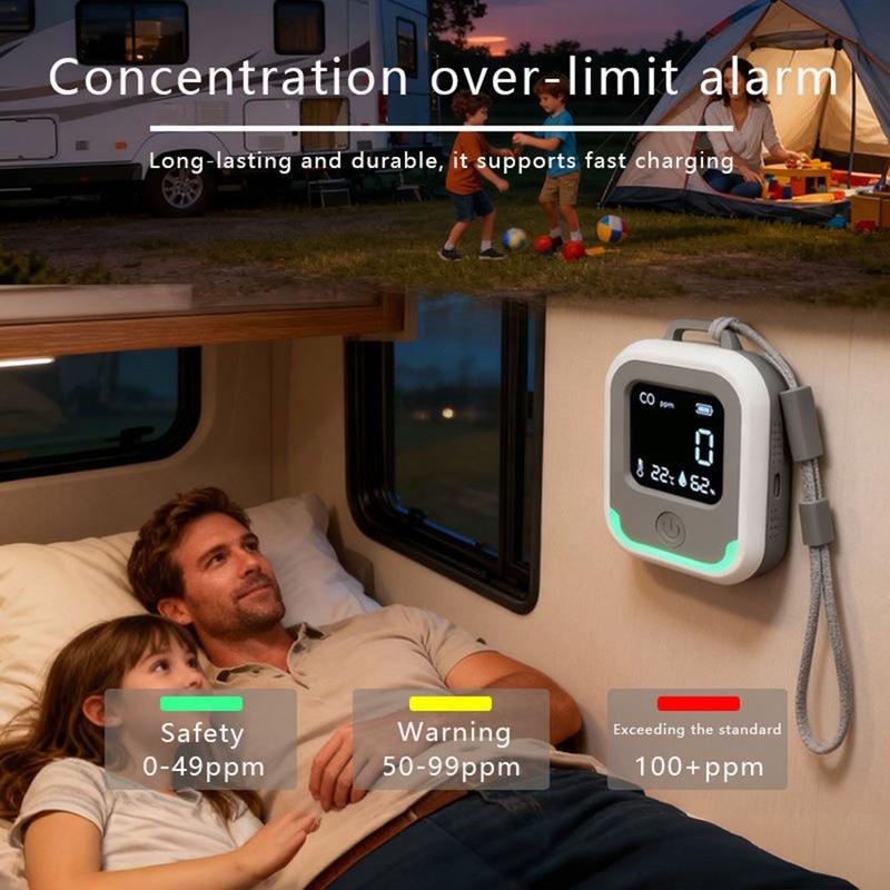 Manténgase más seguro en casa y cuando se desplaza con este detector de monóxido de carbono portátil 3 en 1, que combina la monitorización de la concentración de CO con lecturas de temperatura y humedad en un dispositivo compacto. Diseñado para un uso flexible en equipos de acampada, autocaravanas, cabañas, talleres y espacios interiores cotidianos, le ayuda a detectar a tiempo niveles peligrosos de monóxido de carbono y a mantenerse informado sobre el entorno que le rodea. Una alarma inteligente incorporada le avisa cuando el CO alcanza un nivel peligroso, mientras que el diseño recargable por USB-C y la batería de polímero de litio de 1100 mAh lo hacen práctico para viajes y kits de emergencia. Con un rango de medición de hasta 1000 ppm y un diseño claro y portátil, es una mejora de seguridad fácil para cualquiera que pase tiempo en entornos cerrados o en los que se quema combustible.