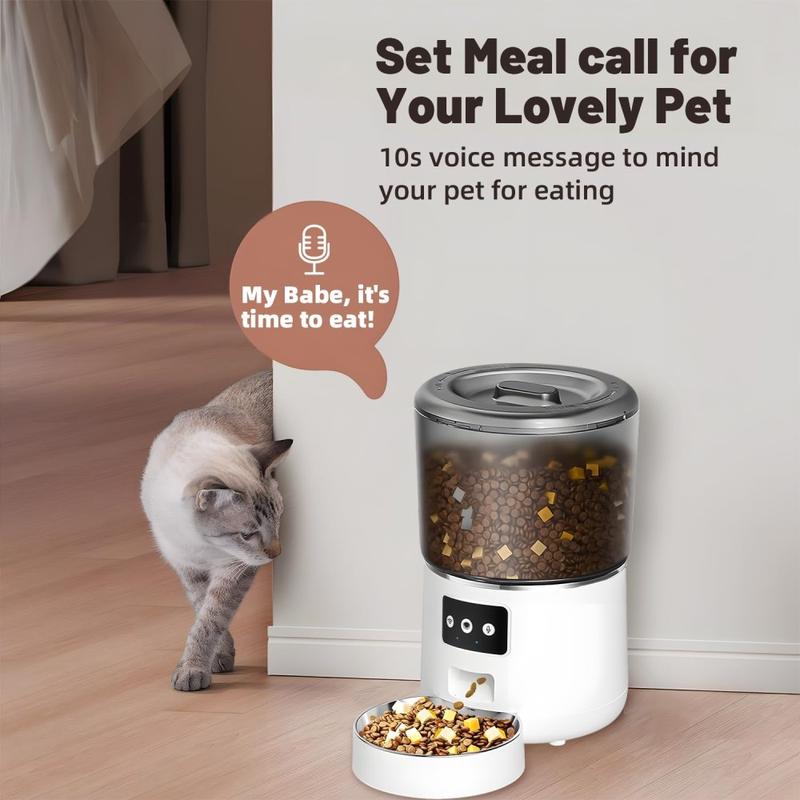 - Capacidad de 4l: El espacioso depósito de comida contiene suficientes croquetas para alimentar a gatos o perros pequeños o medianos durante varios días.
