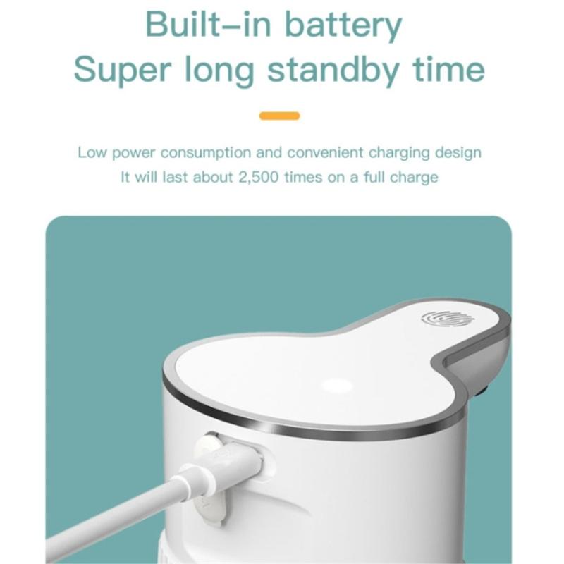 Construido con una batería recargable de 500mAh, el dispensador funciona durante meses con una sola carga. Carga fácilmente a través del cable USB incluido.