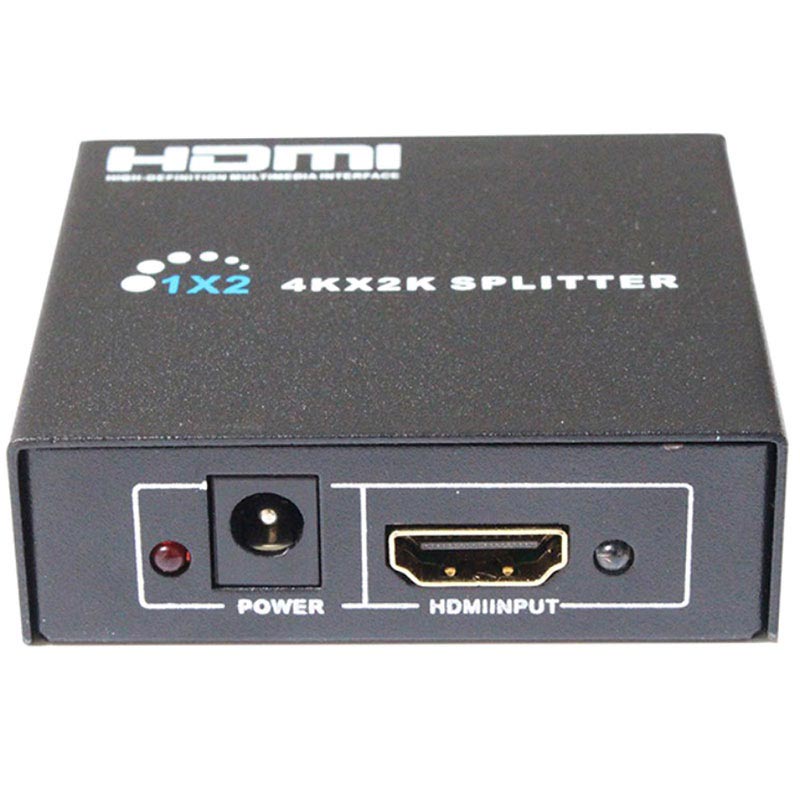 - Practical HDMI splitter that distributes an input signal to two outputs