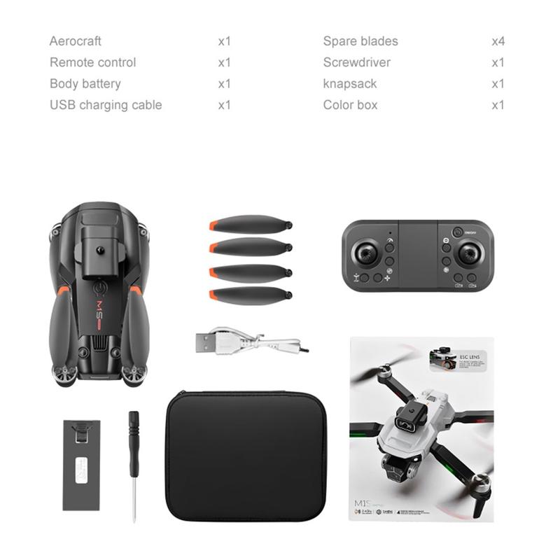 Dron plegable sin escobillas M1S con flujo óptico y sistema de triple cámara: fotos 4K, vídeo 1080p, cámara ajustable en 90 grados, evitación de obstáculos, luces LED y control mediante aplicación