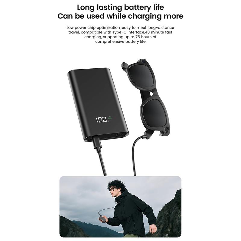- Batería de larga duración - Batería de 320mAh con carga rápida Type-C; hasta 75h en espera, 10h de música, 3h de grabación continua.