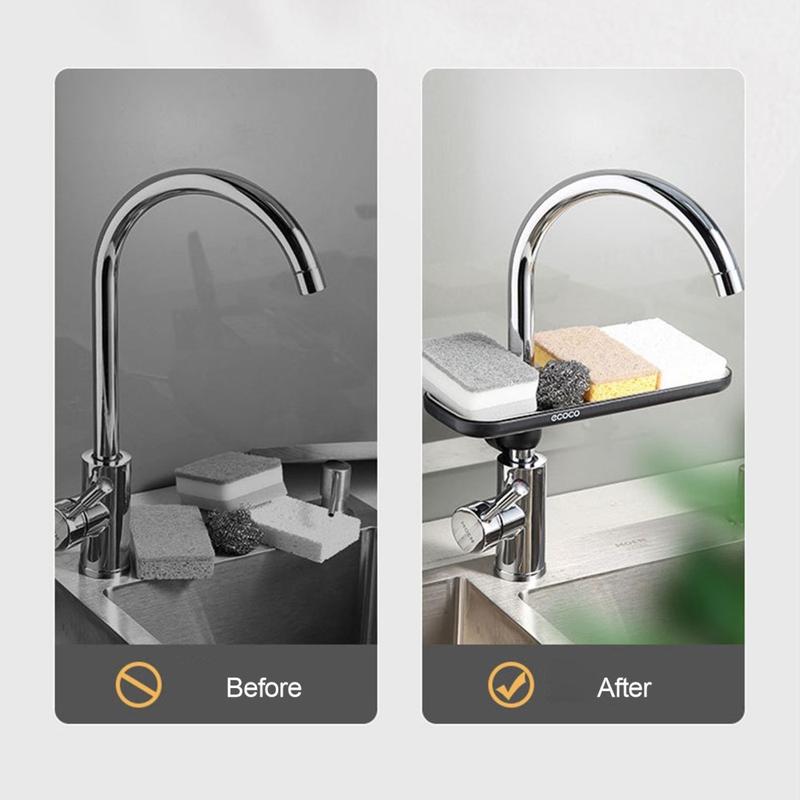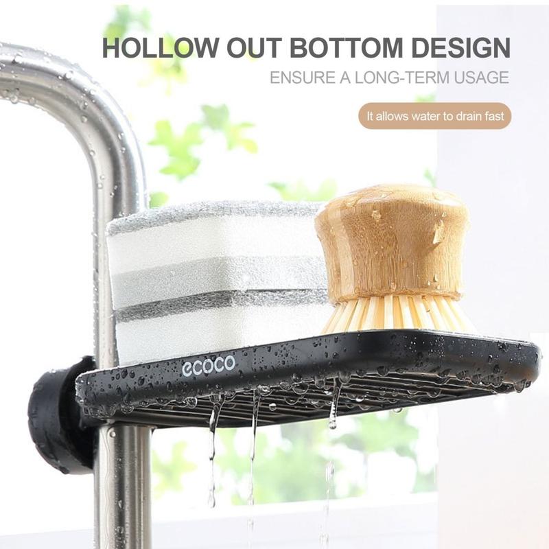 Ecoco Portaesponjas y Cepillos de Acero Inoxidable - Soporte para Jabón Montado en Grifo con Bandeja de Escurrido