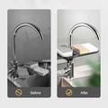 - Los estantes montados en el grifo mejoran la higiene al permitir que el agua gotee directamente en el fregadero