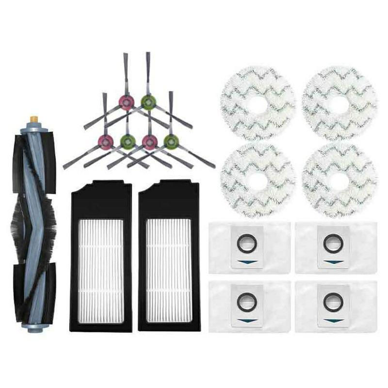 - Completo kit de 17 piezas: Incluye todas las piezas de repuesto esenciales: cepillo principal, cepillos laterales, filtros, bolsas para el polvo y paños para la mopa.